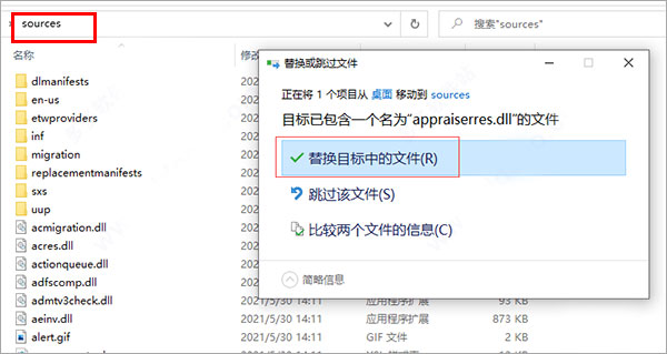 1、首先先把Windows 11 原版ISO镜像解压出来,再复制补丁到sources文件夹里面
