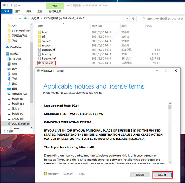 3、再返回根目录双击setup安装win11系统即可