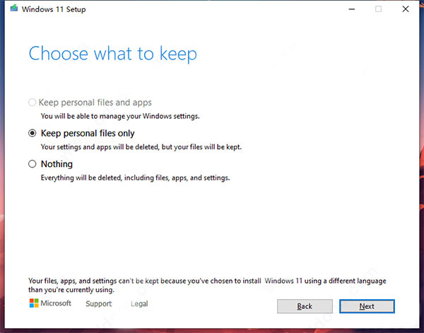 4、选择keep personal files only依提示进行安装