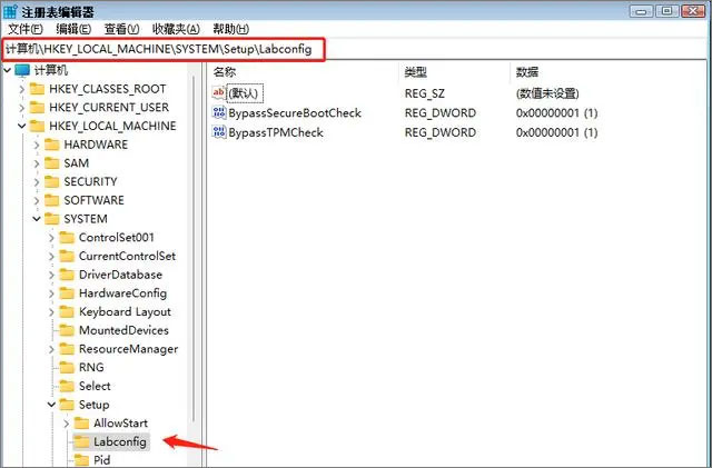 如:HKEY_LOCAL_MACHINESYSTEMSetupLabconfig,