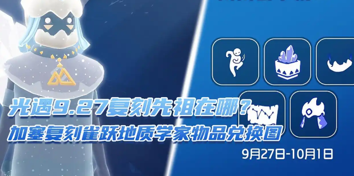 光遇玩家速来!十一前夕惊喜加塞,拾光季「雀跃地质学家」先祖9.26早6点 - 10.1中午12点限时回归!绝版面具与个性发型重出江湖,错过这次,可要苦等半年!想第一时间找到先祖、解锁心仪物品?速读下文,攻略秘籍助你轻松拿下!