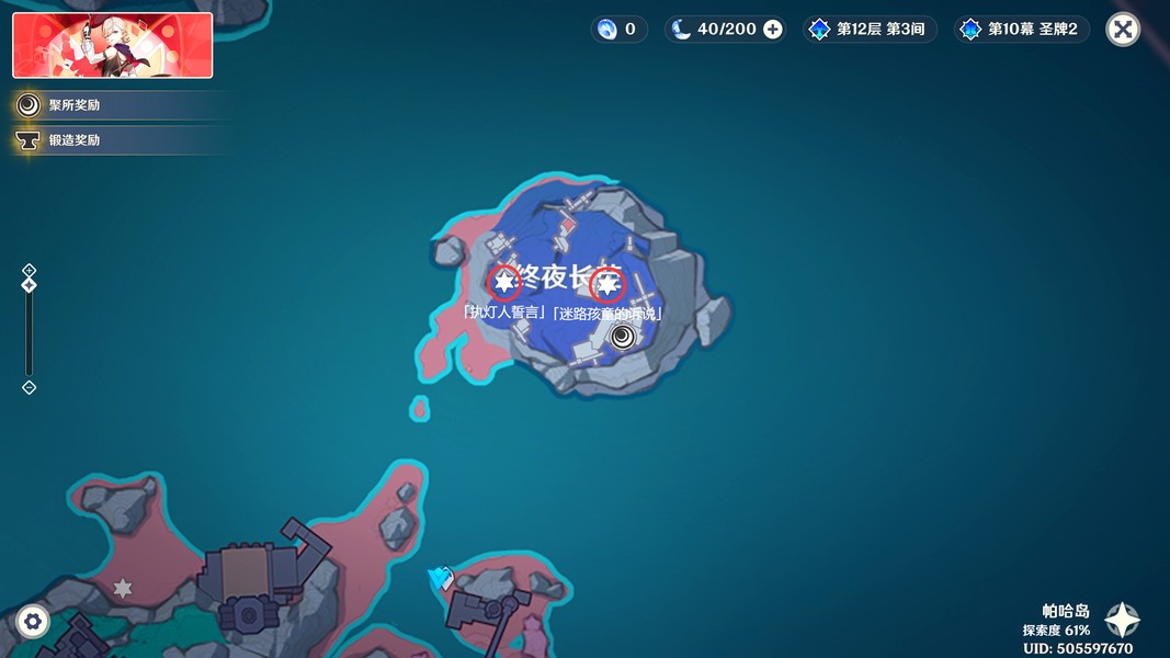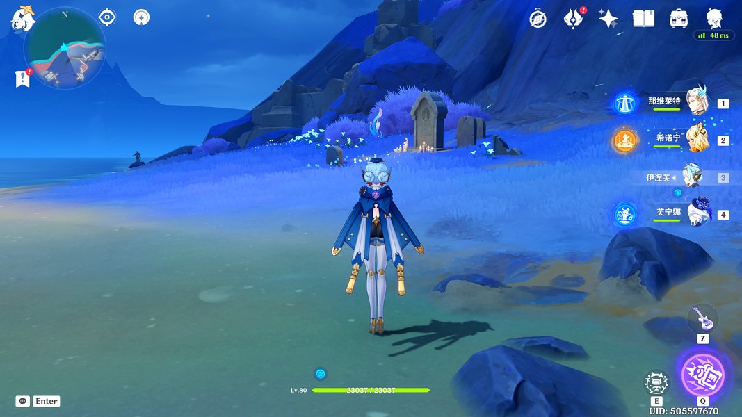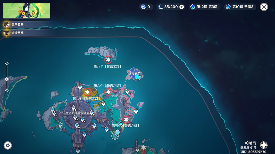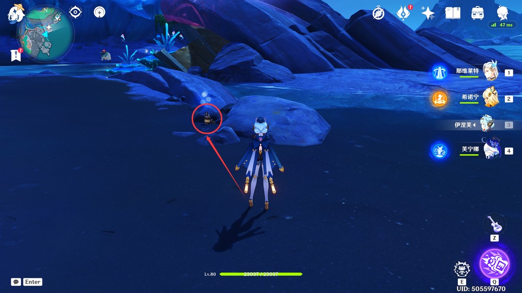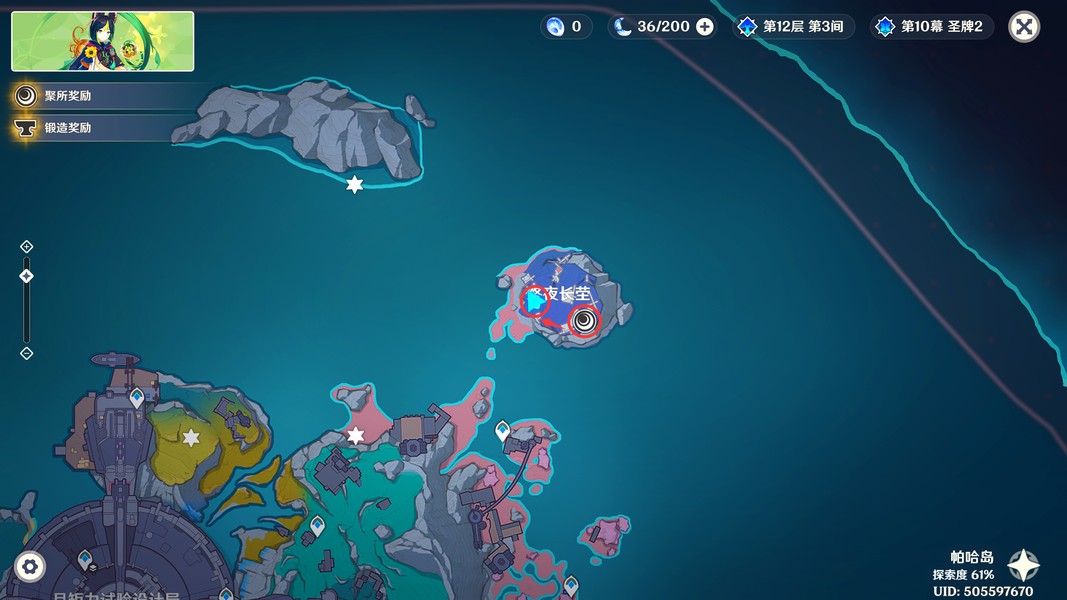这里我们传送到「聚所·终夜长茔」,来到下图位置(海上可以利用「月灵旅路」前进)