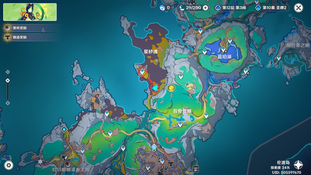 这里我们传送到「星砂滩」的锚点,来到下图位置