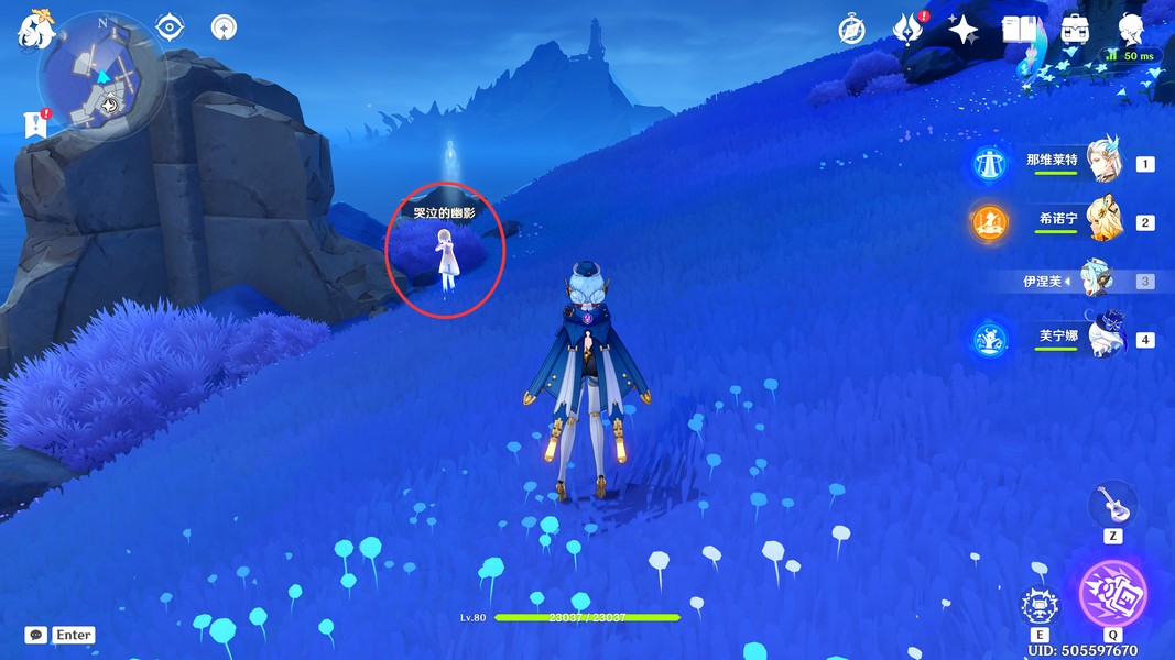 来到此处后,我们与哭泣的幽影对话,即可接取任务「迷路孩童的诉说」(注意!哭泣的幽影只有「执灯人」才能与其交互,「月之一」版本只有菲林斯才能靠近对话)