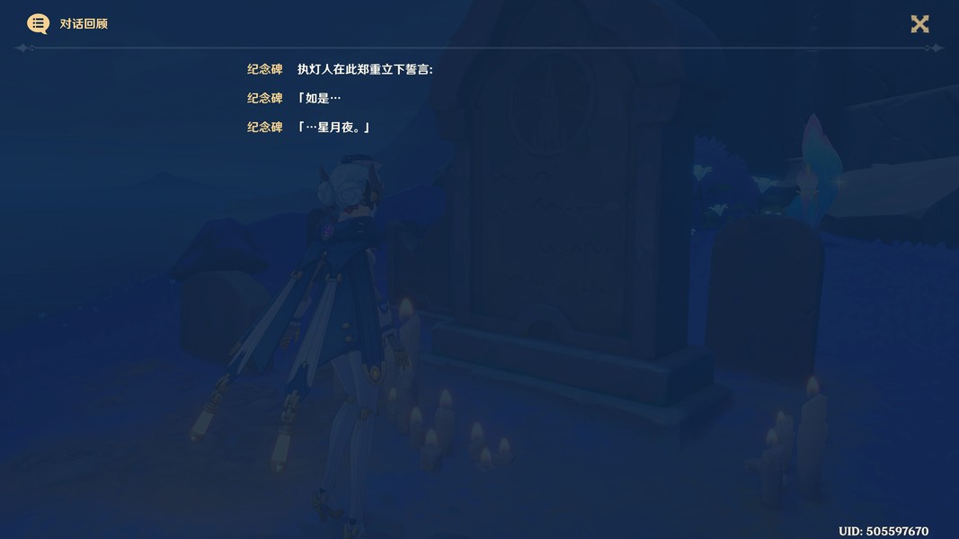 来到此处后,我们与第四个「誓言之灯」交互,即可触发剧情(此处有一个精致的宝箱可以顺手开启)(找到四个「誓言之灯」后,即可自动接取任务「执灯人誓言」)