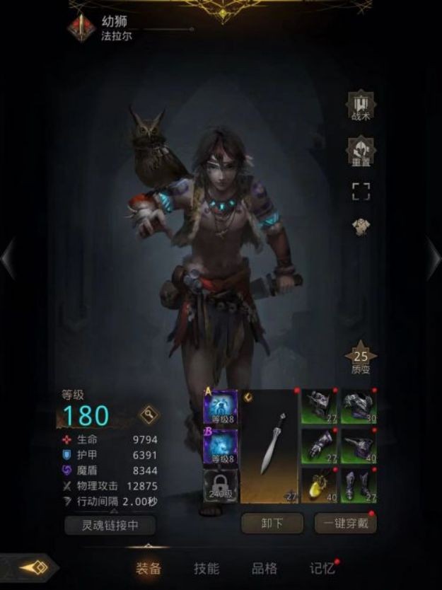 幼狮打法:风轻匕首减抗,优先负面效果80,行动间隔加成,受回复提升,能源核心减抗,仅开启群攻终结技,符文选择宁静。