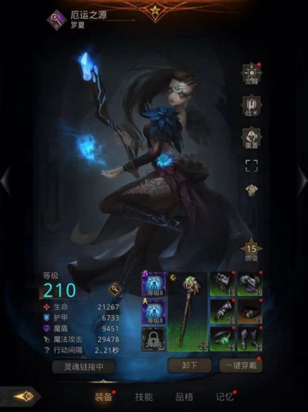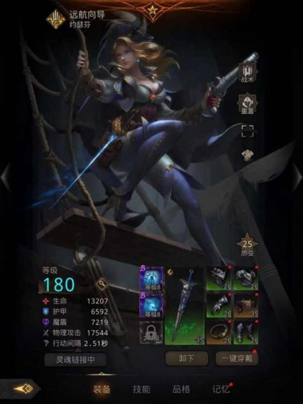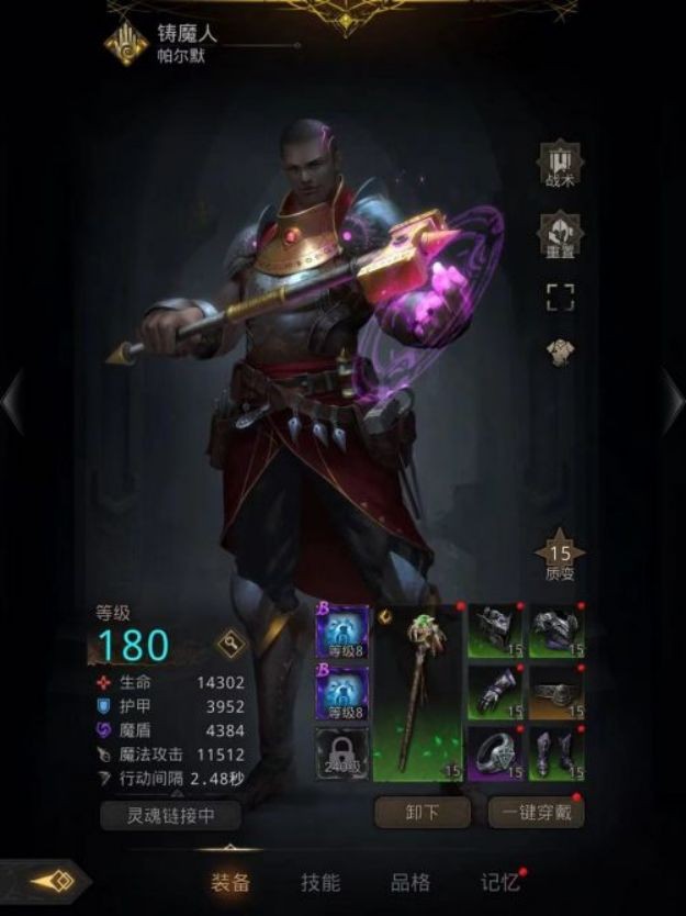 链接180,优先使用带减行动间隔的先发魔魂,尽量装备绿色抗性装。