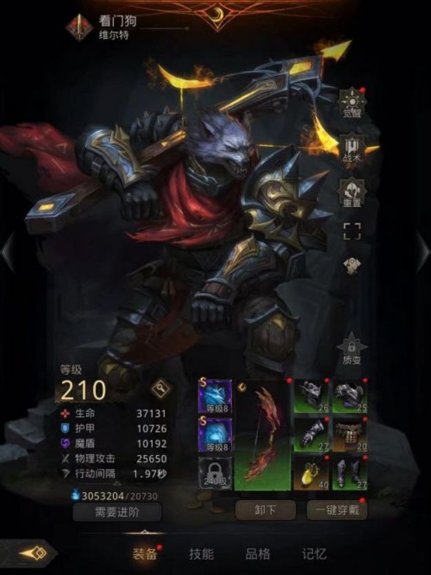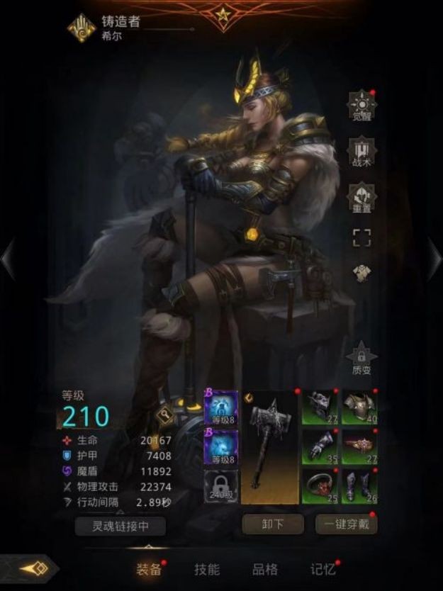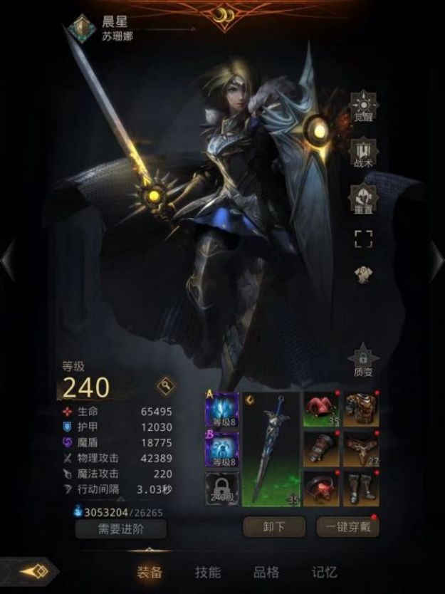 晨星240配置建议:优先提升受回复40%,装备选择全身熔炉装搭配杂耍礼帽与炎魔之戒,词条侧重回复效果。技能方面默认铸造者大招,附带恐惧效果。符文推荐复苏35%,魔物减伤配置2*6,可根据实际情况微调,晨星无需挂机,不确定210是否能稳过。