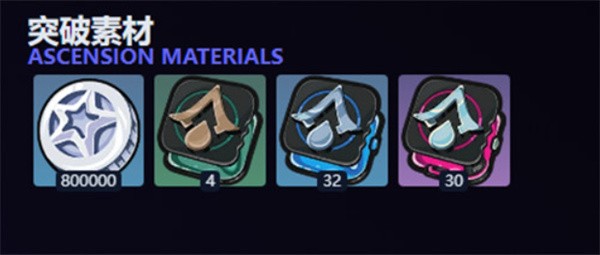 真斗突破阶段所需的资源如下: