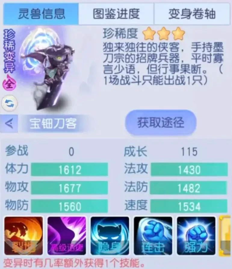 高级洞察技能能让偷袭技能失效,仅作为普通增伤技能存在,还能提升反制类技能的触发效果。这意味着连击宠物面对带有反震技能的宠物时,哪怕有偷袭技能,也依然只能攻击一次。这对连击宠物来说是巨大的打击!从目前的服战和竞技情况来看,物理宠物在这个版本并不占优势,多数人召唤的物理宠物以连击宠物为主,而单攻宠物很少出现。