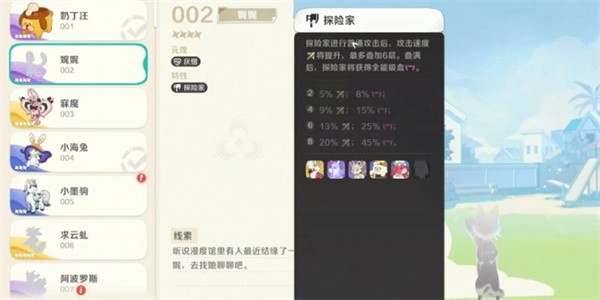 娓娓是一名拥有“厌憎元理”与“探险家特性”的精灵,前期获取概率较高,是初期阵容中极具性价比的角色之一。她的最大亮点在于探索与增益双向兼顾——既能在开放世界探索中发挥作用,也能在战斗中提供可观的攻速与法强加成。