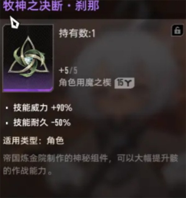 套装效果: 提升技能威力,并可恢复技能耐久值。