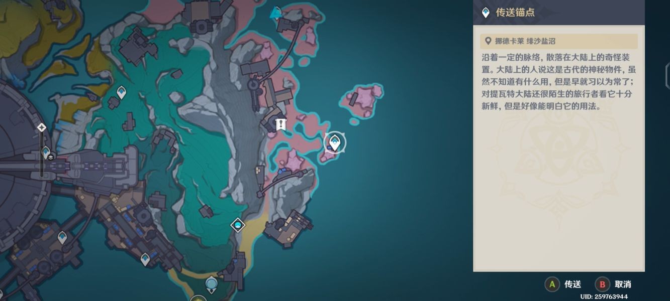打开,来到[挪德卡莱-月矩力试验设计局]右边的[绯沙盐沼];