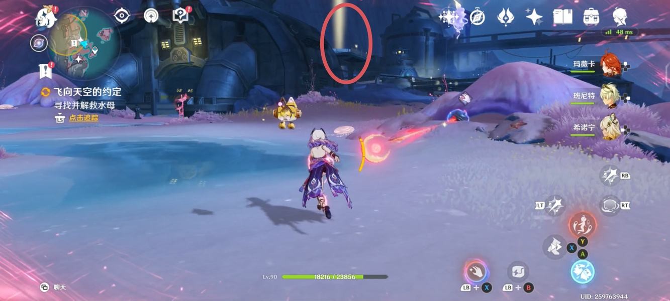 将水母解救后,利用不远处的月矩力来到空中,将机关破坏后进入对话;