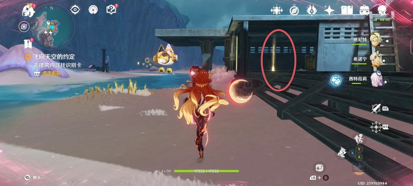 对话完后视角向左手边转,来到[受月矩力影响的植物]旁,将识别卡拾起后放入机关并打开屏障,随后进入对话;