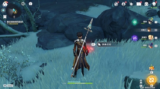 2、完成冰湖中央的挑战任务后屏障解除,搜寻周边的深赤之石击破坚冰。
