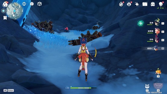 2、一个在坚冰高处,另一个在雪堆中(随机),用火元素攻击融化雪堆即可。