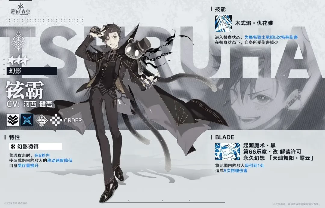 冲击属性奇术师铉霸的核心特色是生成减速敌人的小黑洞,但其普攻判定范围狭窄且伤害不稳定,整体技能组更偏向于功能性而非泛用输出。在多数需要高效清场的战斗环境中表现平庸,除非是追求全图鉴的收藏型玩家,否则不建议投入抽卡资源获取该角色。