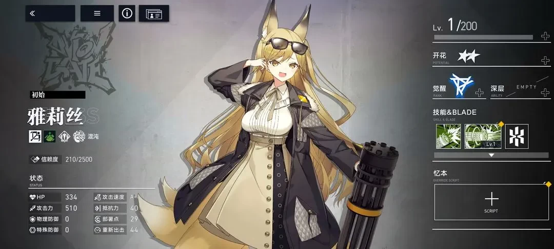 潜行装备雅莉丝是爆发属性远攻手,拥有榴弹普攻与五连发技能组合,大招具备全屏贯穿与爆炸效果。她在传承战下塔场景中具有不可替代的输出地位,对于新手玩家而言是极具价值的开荒选择。老玩家若已拥有该角色则无需重复抽取,可通过后续卡池随机获取。