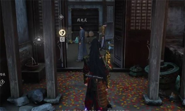 进入亭子后,先分别与角落的四把剑互动。