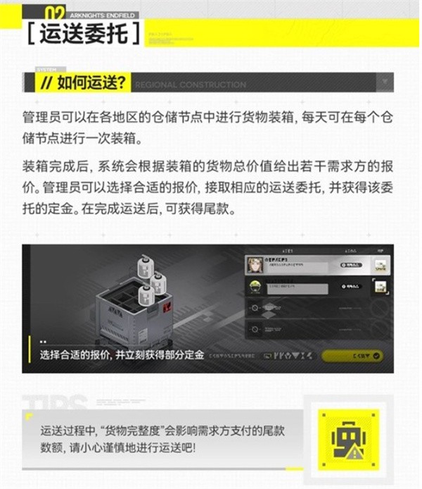 仓储节点是终末地快送在各地区设立的物资仓库,主要功能有两项: