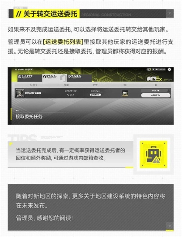 若管理员无法按时完成运送,可将该运送委托转交给其他玩家。