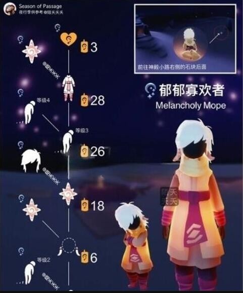 光遇里忧郁自艾者先祖复刻啦,在它这儿能换好多好东西呢。可不少玩家还不清楚光遇郁郁寡欢者具体在啥位置,别着急。下面小编就为玩家们详细分享下光遇郁郁寡欢者先祖的位置,还会附上兑换图,大家跟着小编的介绍,很快就能找到啦。