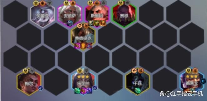 1.阵容组成:梅尔+赛恩+贝蕾亚+千珏+安蓓萨+费德提克+斯维因+乐芙兰+德莱文